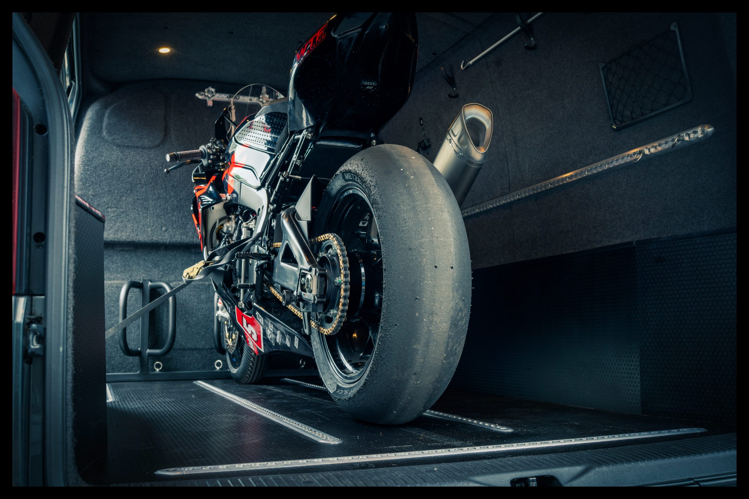 Our original, sturdy, steel framed VW Transporter Van Bike Rack is available in double and triple wheel brace options for securing up to three bikes/motorcycles. The bike rack is suitable for a wide range of motorcycles and bicycles and is compatible with Volkswagen T5, T5.1 and T6 Transporter panel vans. It’s loaded with eye bolts to give you multiple options for securing your pride and joy during transit.
